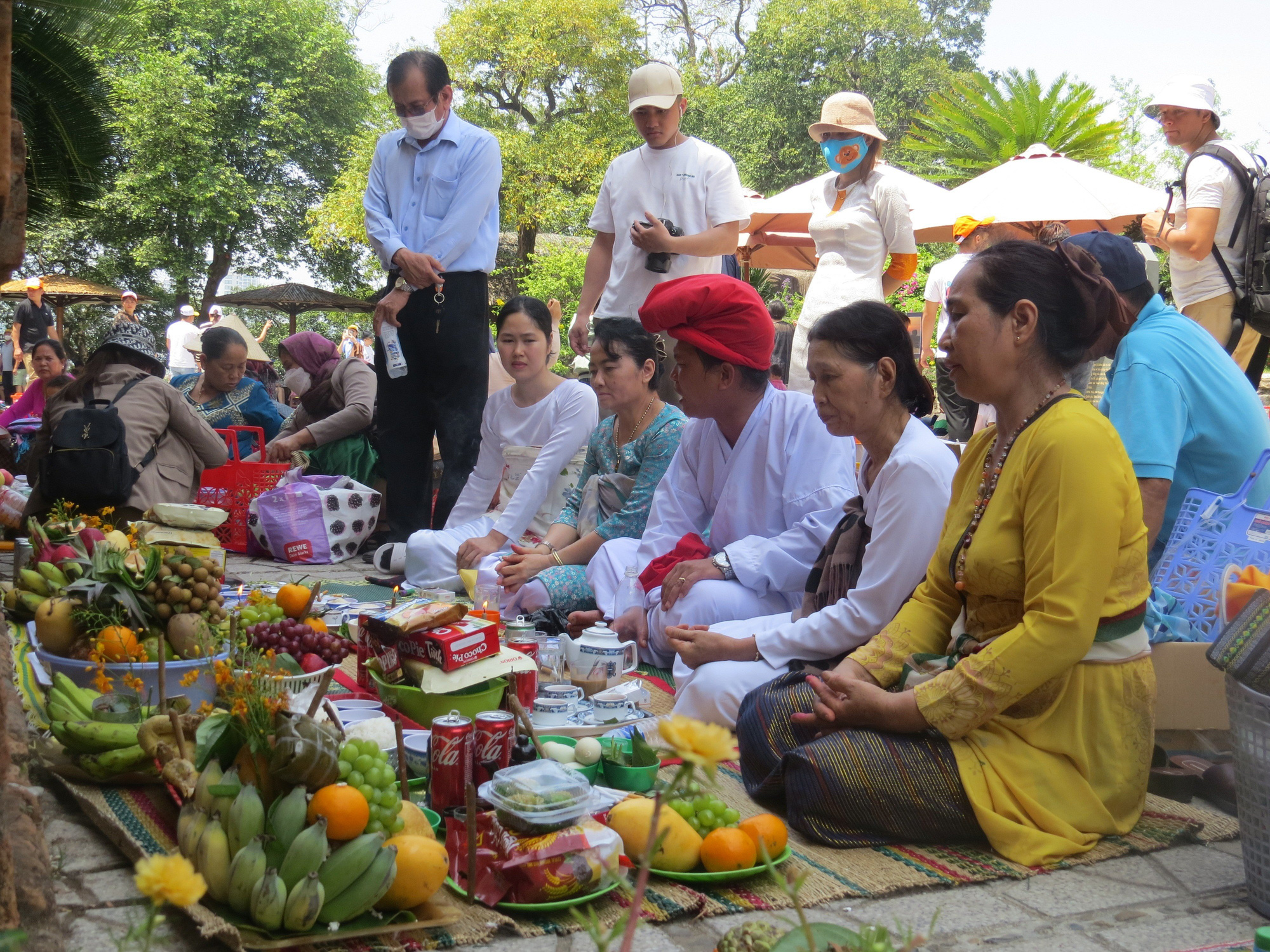 Đặc biệt trong ngày hôm nay có đoàn khách hành hương Chăm khoảng hơn 1.000 người đến Tháp Bà để chiêm bái, thực hiện nghi lễ vì đang là ngày đầu năm mới của người Chăm.